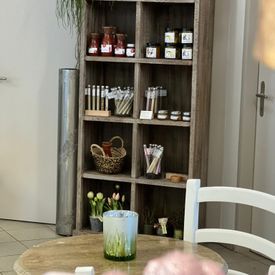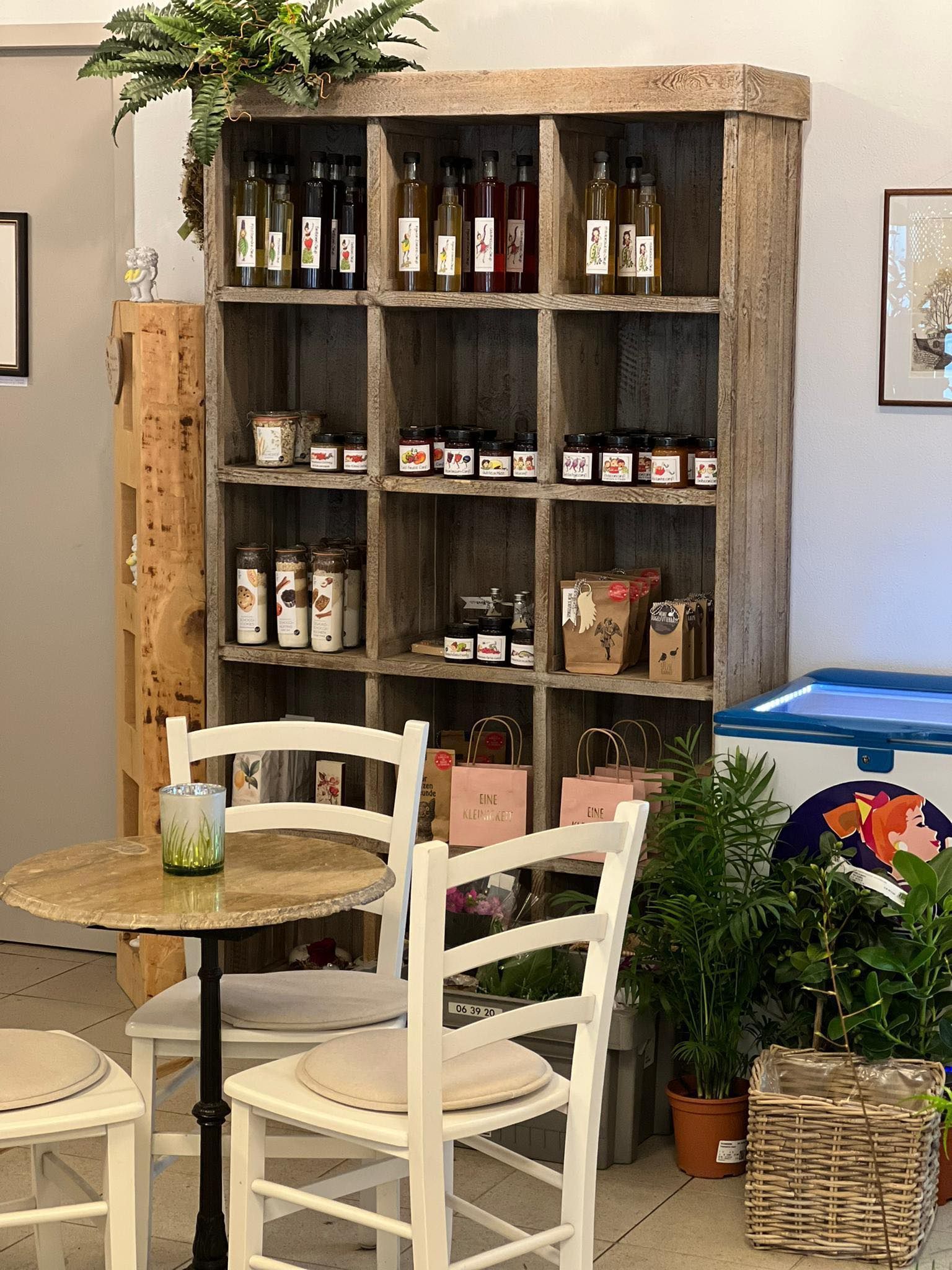 Sehr beliebt sind auch unsere Deko- und Geschenkartikel, zudem führen wir ausgewählte regionale Produkte des Hofladens Bubentaler Hof (Sirup, Konfi, eingelegtes Gemüse, Essig, Gewürze und Backmischungen).